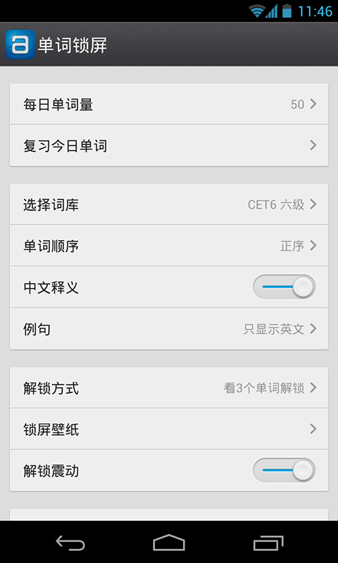 1.锁屏单词展示:采用智能分级系统,根据用户水平动态调整词汇难度,从基础800词到GRE核心3000词自动过渡