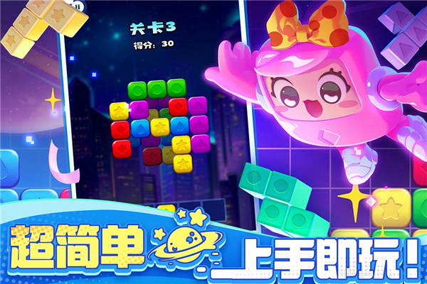 4.精美的画面和音效:采用高清卡通画风,每个方块都经过精心设计,搭配节奏感十足的背景音乐和生动的音效反馈。