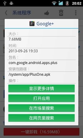 3,提供多种显示选项,包括安装时间、包名、存储路径等详细信息;