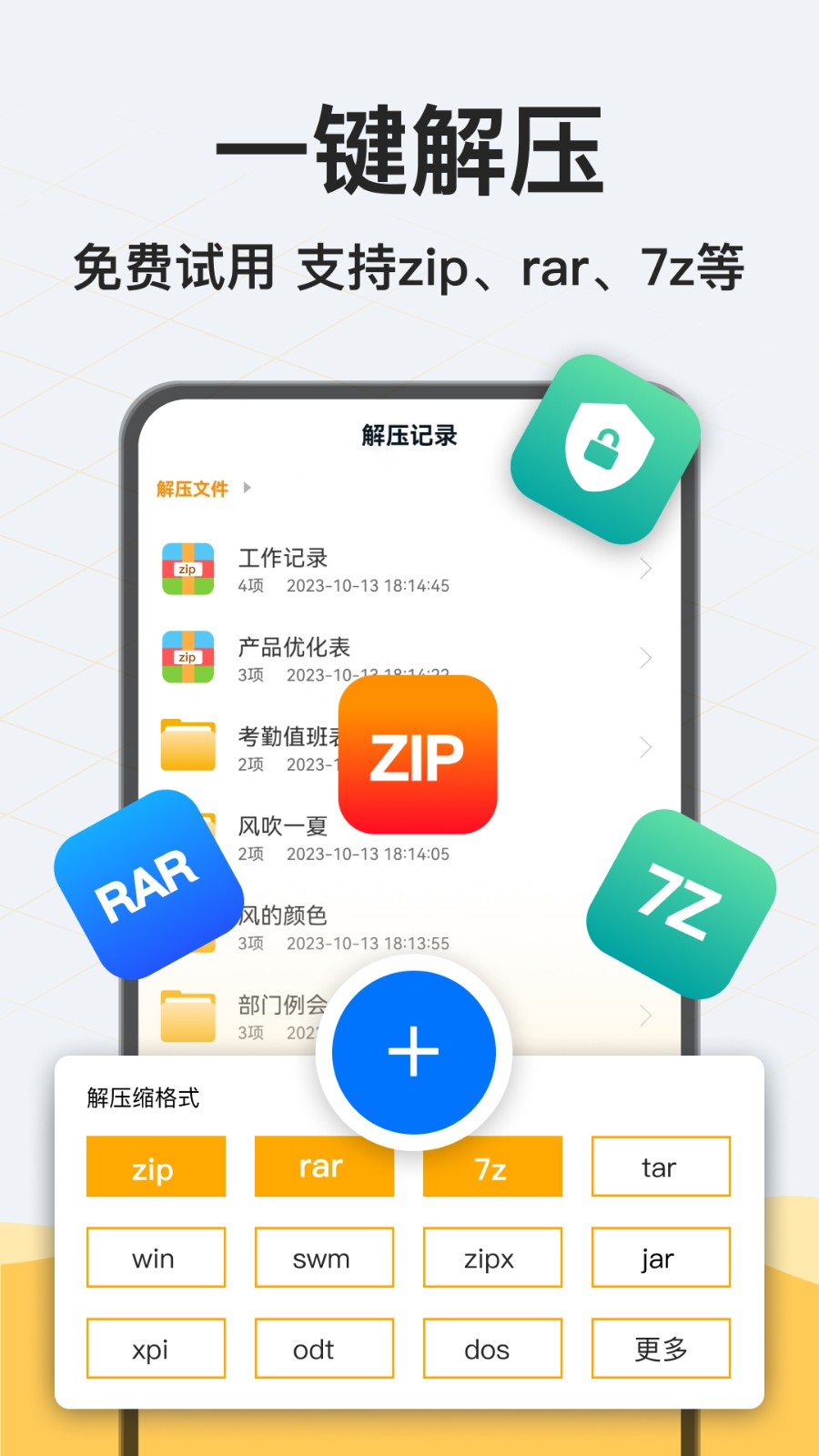 解压rar是一款功能强大的文件解压缩工具,支持市面上几乎所有主流压缩格式,包括ZIP、7Z、RAR、CBS、BIN等。无论是工作文档、高清图片、影音文件还是各类安装包,都能轻松解压处理。软件提供批量操作功能,可同时处理多个压缩文件,大大提升工作效率。内置文件管理器让您随时查看压缩包内容详情,所有功能完全免费且无任何使用限制。简洁直观的界面设计让新手也能快速上手,是您手机必备的解压神器。