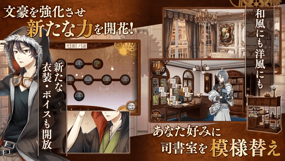 5.角色互动:每位文豪都拥有独立的好感度系统和专属剧情线。互动方式包括文学讨论、下午茶会等十余种社交活动,还能参观文豪的私人书房。