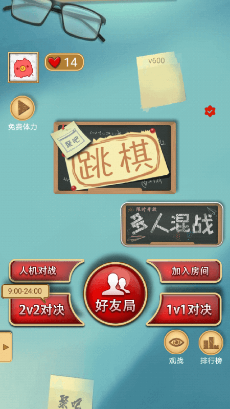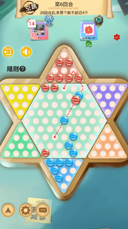 3、游戏胜利条件简单明了:率先将所有棋子移入对方基地即可获胜。除了经典的单挑模式外,还特别设计了2v2团队战玩法,考验队友间的配合默契。战局模式则引入了特殊道具系统,为对弈增添更多变数。