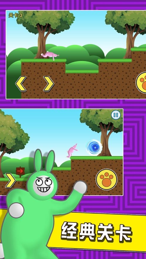 在游戏中,玩家需要通过声音指令或触屏操作来控制兔子人的动作。游戏要求玩家精准操控兔子人完成滚动、跳跃、爬行等动作,最终抵达不断旋转的传送门。沿途需要克服各种障碍,包括危险的悬崖、尖锐的地刺,以及各种恶搞的机关陷阱。游戏物理引擎模拟效果夸张,角色动作滑稽搞笑,配合精心设计的关卡,为玩家带来充满挑战又乐趣无穷的游戏体验。随着关卡推进,难度会逐渐提升,考验玩家的反应能力和操作技巧。