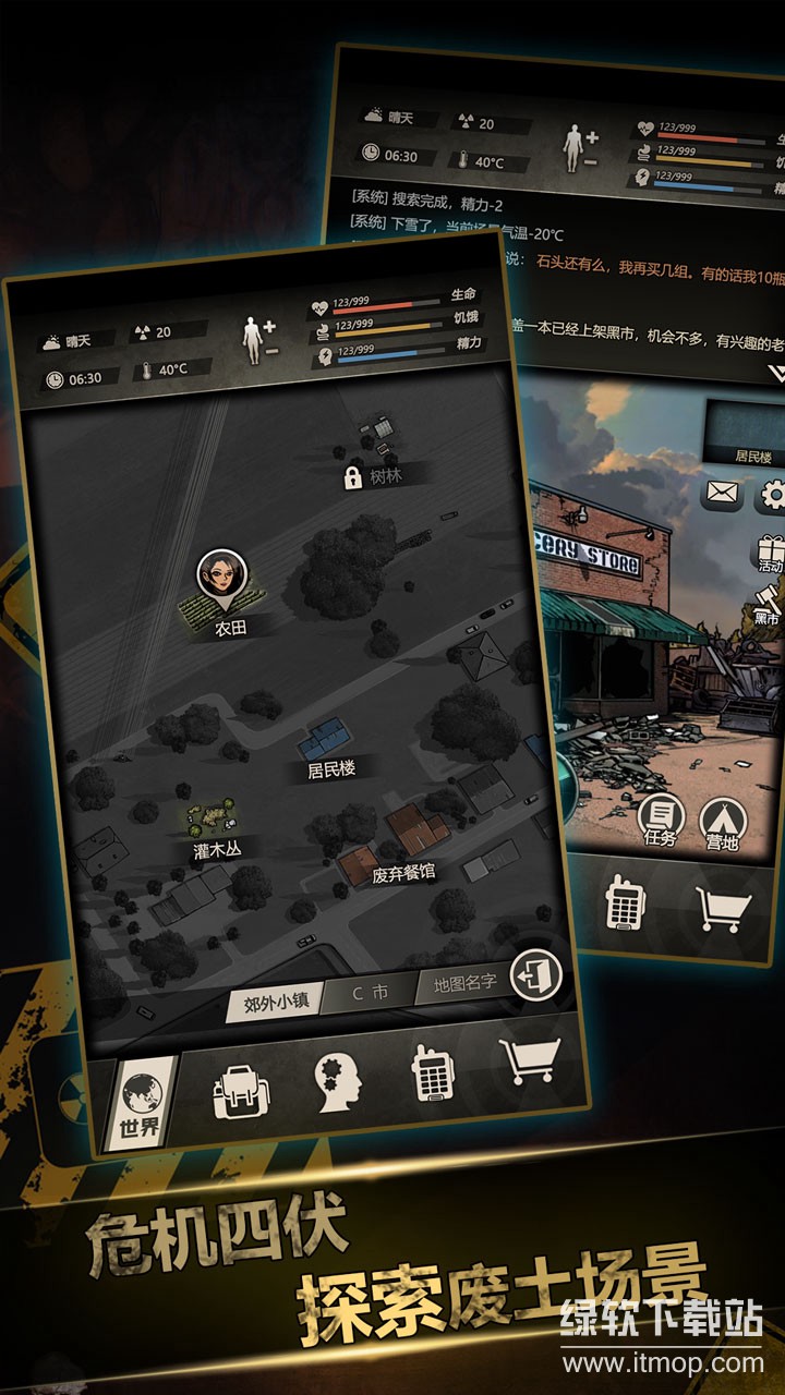 4、无尽的可重复性,随机的城市和事件,个人技能,津贴,关系和幸存者的故事。每次开局都会生成全新的地图布局和事件链,幸存者们会发展出复杂的人际关系网,这些动态叙事元素让每次游戏体验都独一无二。