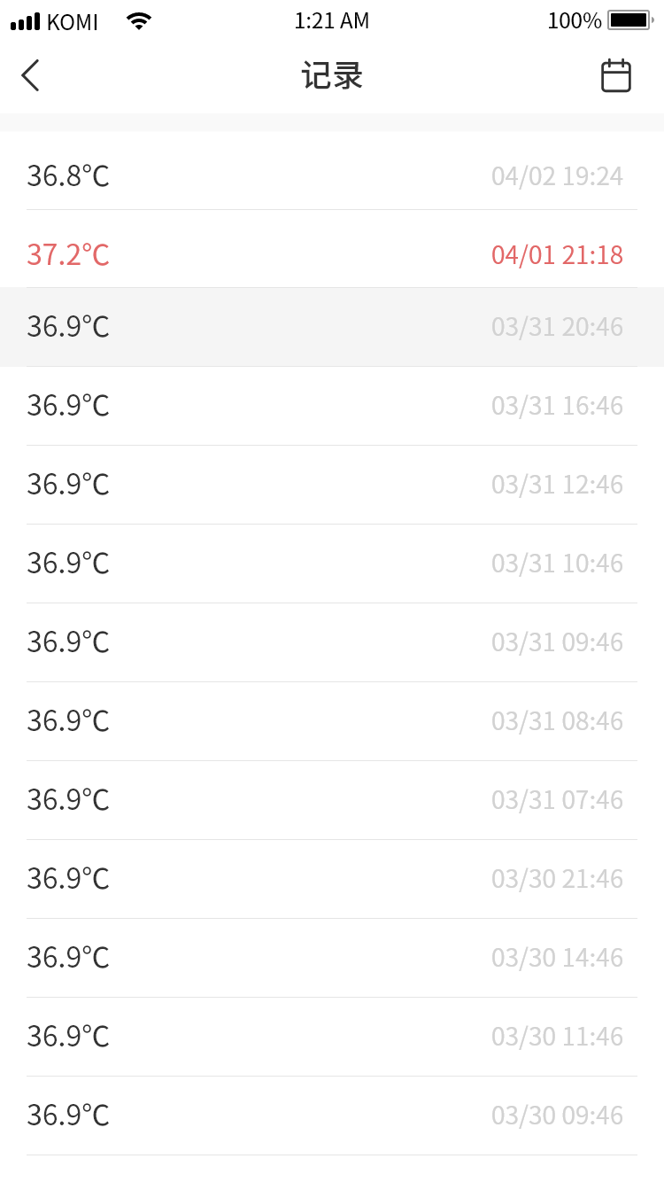KOMI生活App支持多用户管理功能,可以为家庭中每个成员创建独立档案,测量后温度数据自动归类到相应用户名下,方便家庭成员健康管理。强大的统计功能会自动在App中同步所有测量记录,形成完整的温度变化曲线,就医时可直接出示详细记录,再也不用担心找不到温度数据。智能发烧提醒功能会在测量后立即显示温度状态,当检测到异常高温时,App会发出警示提醒,并给出专业建议。用户还可以设置温度预警阈值,当测量值超过设定范围时自动通知,让健康监测更加主动及时。