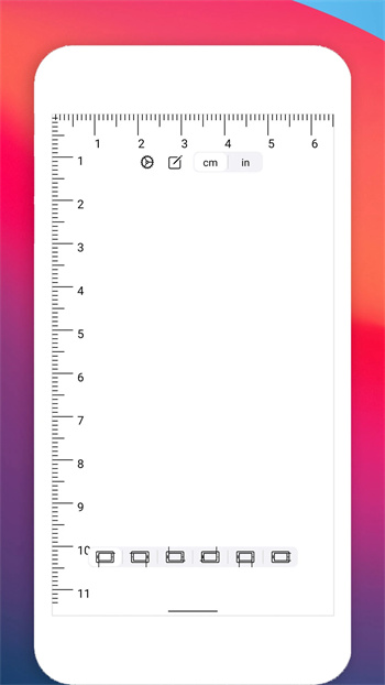 1.提供厘米和英寸两种常用单位尺子,支持一键快速切换,完美适配不同国家和地区的测量习惯。单位转换功能设计科学合理,确保测量数据准确无误,特别适合需要频繁切换单位的用户使用。