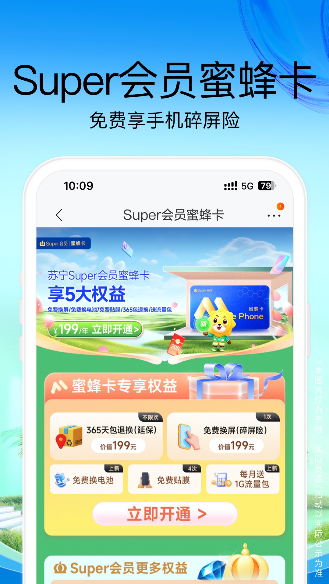 super会员蜜蜂卡:为super会员提供专属福利,尊享200元手机券返还等多项特权。