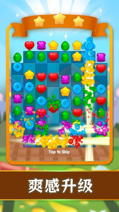 1、核心玩法是通过滑动屏幕将三个或以上相同糖果连成一线进行消除。五个相同糖果直线排列会产生彩虹糖,可以消除整行或整列;T型或L型排列会产生包装糖,引爆后清除周围区域。掌握这些特殊组合是获得高分的关键。