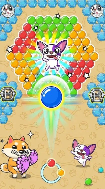 1、游戏采用Q版卡通风格,狗狗角色圆润可爱,泡泡造型晶莹剔透,色彩搭配明亮活泼,每个细节都经过精心设计,带给玩家视觉上的享受;