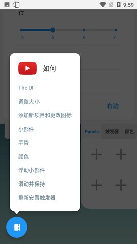 1、手势操作:支持多种自定义手势控制,让操作更加直观便捷。2、您不仅可以设置手势来触发单个功能项,还能通过特定手势直接调出整个面板界面。3、单手操作优化:充分考虑单手使用场景,让大屏手机也能轻松掌控。4、侧边栏位置可以自由调整,支持单手完成大小调节和导航操作。5、丰富的个性化设置:提供多种自定义选项,满足不同用户的使用偏好。6、您可以自由调整图标样式、面板尺寸,还能选择隐藏标签或开启触觉反馈等功能。7、多样化的配色方案:支持个性化视觉定制。8、每个面板都可以单独设置配色,也支持批量修改,还能保存您喜爱的侧边栏颜色方案。9、丰富的小部件支持:内置多种实用工具组件。10、从Google日历到计算器,各类常用小部件都能添加到侧边栏,通过单边滑动即可快速启动。11、浮动小部件功能:实现真正的多任务处理。12、小部件可以在其他应用上方以独立窗口形式显示,浏览设备时还能将其最小化为图标大小。13、应用快捷入口:打造个性化工作流。14、通过长按操作,您可以添加任意应用程序或游戏快捷方式,在任何界面都能快速启动,无需返回主屏幕,大幅提升多任务处理效率。