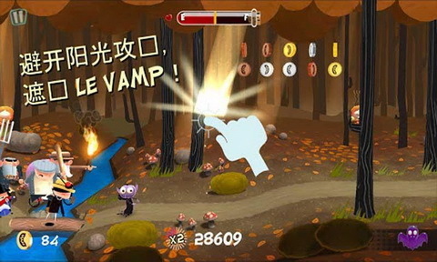在《古怪吸血鬼》这款充满童趣的横版冒险游戏中,玩家将扮演一只可爱的小吸血鬼LeVamp,展开一场别开生面的森林冒险。游戏以秋意盎然的树林为背景,你需要帮助LeVamp躲避阳光、大蒜和愤怒村民的追捕,同时收集金币和血小猪来维持生命值。精美的卡通画风让这个吸血鬼题材的游戏显得格外清新,丰富的关卡设计和多样的升级系统为游戏增添了更多可玩性。通过简单的触控操作,玩家可以改变环境来为小吸血鬼开辟道路,这种独特的玩法让跑酷游戏焕发出新的活力。