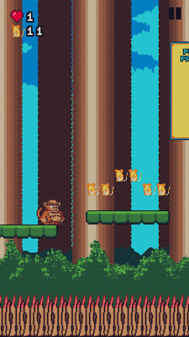 4、丰富的道具系统为游戏增添策略深度。玩家可以收集香蕉兑换特殊能力,如二段跳、短暂无敌等。某些隐藏道具还能解锁特殊关卡或彩蛋内容,鼓励玩家探索游戏中的每个角落。