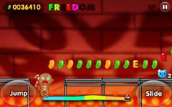 1.游戏有精美细致的画面设计,让玩家沉浸在姜饼人的奇界中。从糖果森林到巧克力山脉,每一个场景都经过精心打造,色彩鲜艳的视觉效果搭配轻快的背景音乐,营造出梦幻般的游戏氛围。玩家在奔跑的过程中还能发现隐藏的彩蛋和互动元素,让探索过程充满惊喜。