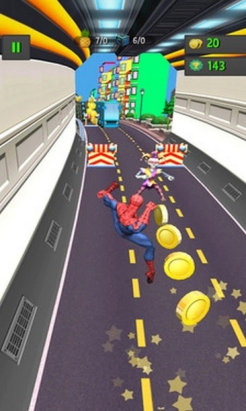 在这款以蜘蛛侠为主角的跑酷游戏中,玩家将化身这位敏捷的超级英雄,在纽约街头展开一场惊险刺激的跑酷冒险。游戏不仅支持玩家选择不同风格的蜘蛛侠皮肤,还会随机遇到钢铁侠、暗影蜘蛛侠等漫威宇宙中的其他英雄角色。操作方式简单直观,通过左右滑动控制移动方向,上下滑动实现跳跃和翻滚动作。游戏考验玩家的反应速度和操作技巧,你需要不断突破自我,创造更高的跑酷分数,成为真正的跑酷达人。