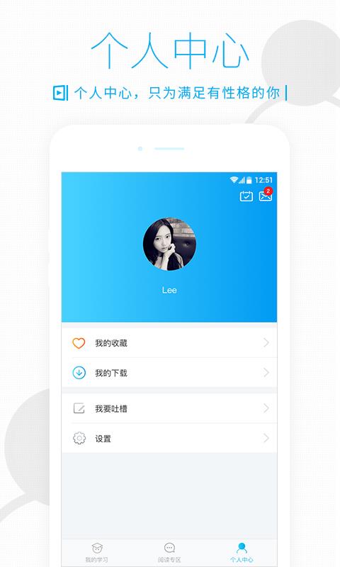 4、进入"个人中心"可以查看已下载和收藏的所有学习资料,管理个人学习进度,规划下一步的学习计划。