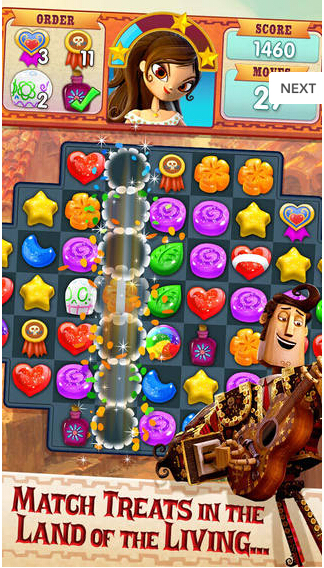 《生命之书:糖果粉碎BookofLife:SugSmash》是一款以电影《生命之书》为背景的三消游戏。游戏规则简单但富有策略性,玩家需要通过左右上下调换糖果位置,将3个或以上的同色糖果连成直线或横线进行消除。游戏中有多种特殊糖果,包括条纹糖果和彩虹糖果,它们能分别消除整行或同颜色的所有糖果。游戏关卡设计巧妙,难度循序渐进,后期关卡需要玩家精心规划每一步操作。游戏还融入了电影中的经典场景和角色,让玩家在消除糖果的同时重温电影情节。