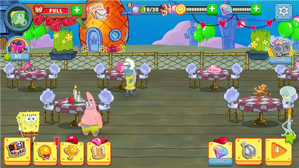 2.互动体验:玩家可以与顾客进行互动,了解他们的需求和反馈,从而提升服务质量和顾客满意度。不同顾客有各自的饮食偏好和性格特征,比如章鱼哥对服务格外挑剔,而派大星总是点错单,这些充满戏剧性的互动让经营过程妙趣横生。