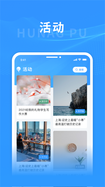 进入上海黄浦app首页,点击底部导航栏的"我的"选项,进入个人中心页面。