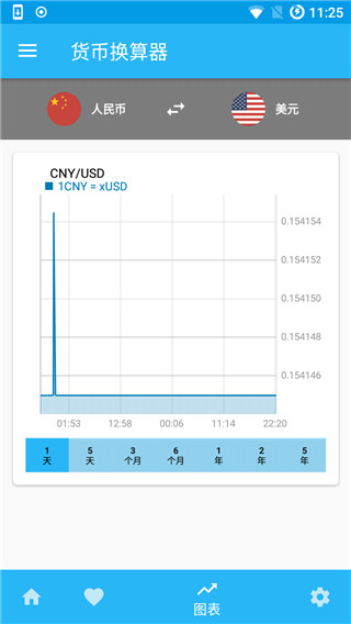 2、汇率信息每分钟自动更新,同步生成直观的汇率变化曲线图;