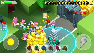 2、卡通简约的游戏画风。明亮的色彩搭配和可爱的像素角色,让恐怖的末日题材变得轻松有趣,适合各个年龄段的玩家。