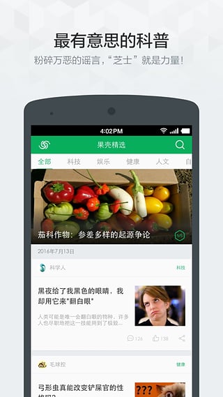 果壳精选是由国内知名科普平台果壳网精心打造的移动端应用,整合了科学松鼠会、萌爪日记等专业科普团队的高质量内容。不同于传统新闻客户端,它更注重内容的趣味性和知识性,将复杂的科学原理转化为通俗易懂的趣味阅读。应用特别设计了适合碎片化时间阅读的"泡面番"、"尿番"等特色栏目,让用户在短短几分钟内就能收获有趣的知识点。这些内容不仅能够满足求知欲,还能成为社交场合的谈资,帮助用户展现独特的见解和幽默感。