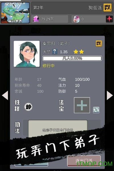 在弟子培养方面,建议优先选择三星资质(1.55)以上的弟子重点培养;参加弟子比赛时,可选用即将突破的离合期弟子,配合丹药和铃铛武器轻松夺冠;大地图上的各类活动务必积极参与;初期对待四大宗门可采取友善策略,优先学习右侧友善技能;待培养出多名满级弟子后,可向友善宗门赠送武器获取秘籍;当能够锻造如意法宝时,便可对敌对宗门开战,获取更多高级秘籍。游戏后期内容相对固定,玩家可根据个人喜好选择是否继续挑战。