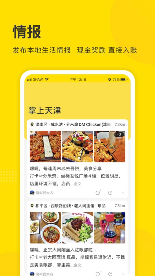发布有用、有料、会火的本地生活情报,赚现金奖励,钱包极速到账。独创的智能推荐算法,让优质内容获得更多曝光机会。奖励机制透明公开,优质内容可获得额外奖金,最高单篇奖励可达500元,让分享创造价值。