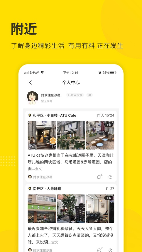 天津这么大,身边发生了什么事儿,在这都知道。实时推送周边3公里内的新鲜事,从社区公告到商场促销,从交通管制到突发事件,让您足不出户掌握社区动态。支持个性化订阅,只接收您关心的领域信息,避免信息过载。