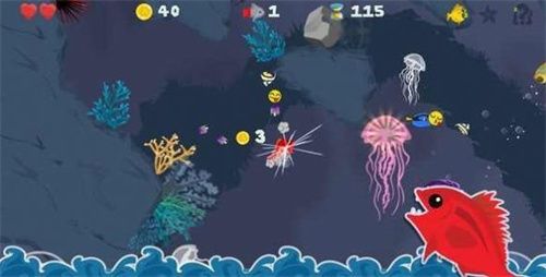 1、在浩瀚的海洋中,生存是唯一的目标。玩家需要灵活操控小红鱼,避开强大的掠食者,同时寻找比自己弱小的鱼类进行吞噬,逐步提升体型和能力。
