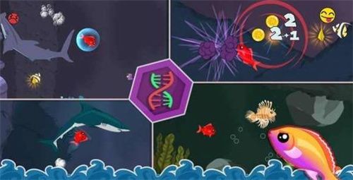 1、创新的海底生存玩法,玩家需要控制小鱼不断吞噬比自己弱小的生物,通过进食获得成长点数。随着体型增大,可以解锁新的海域和更强大的猎物,体验从弱小到强大的成长历程。