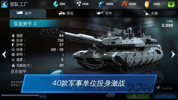 6、史诗级战争场面:游戏采用先进的物理引擎,呈现震撼的战争场景。从装甲集群冲锋到导弹齐射,每个战斗细节都经过精心设计,为玩家带来身临其境的战争体验。
