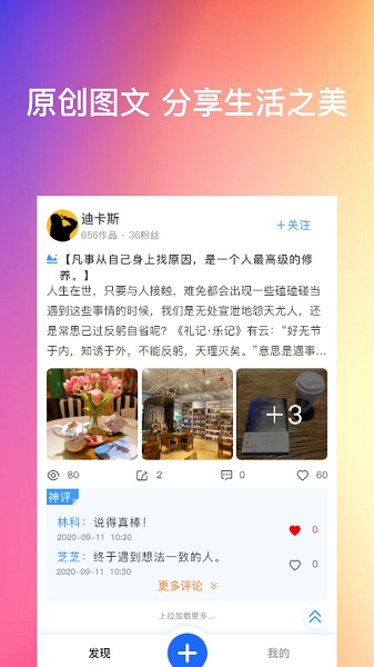3、原创内容分享社区,鼓励用户展示摄影作品和设计创意,打造优质视觉平台