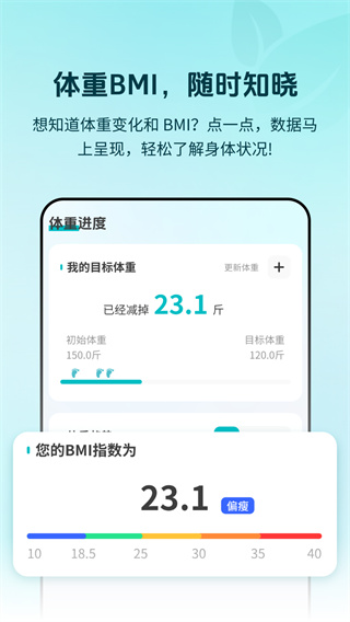 《体重管理BMI》是一款专注于健康生活的智能体重管理应用,致力于帮助用户科学掌控身体变化。通过精准的BMI算法和全面的数据记录功能,这款APP不仅能实时追踪体重趋势,还能分析饮食营养摄入,为用户打造个性化的健康管理方案。无论是想减重、增肌还是维持体型,它都能提供专业指导,让健康管理变得简单有趣。内置的激励系统和可视化图表更能激发用户坚持的动力,是您迈向健康生活的得力助手。