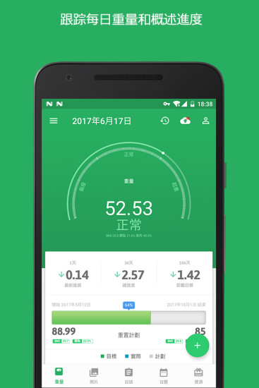 - 智能目标追踪系统,可根据用户设定自动计算每日达标进度