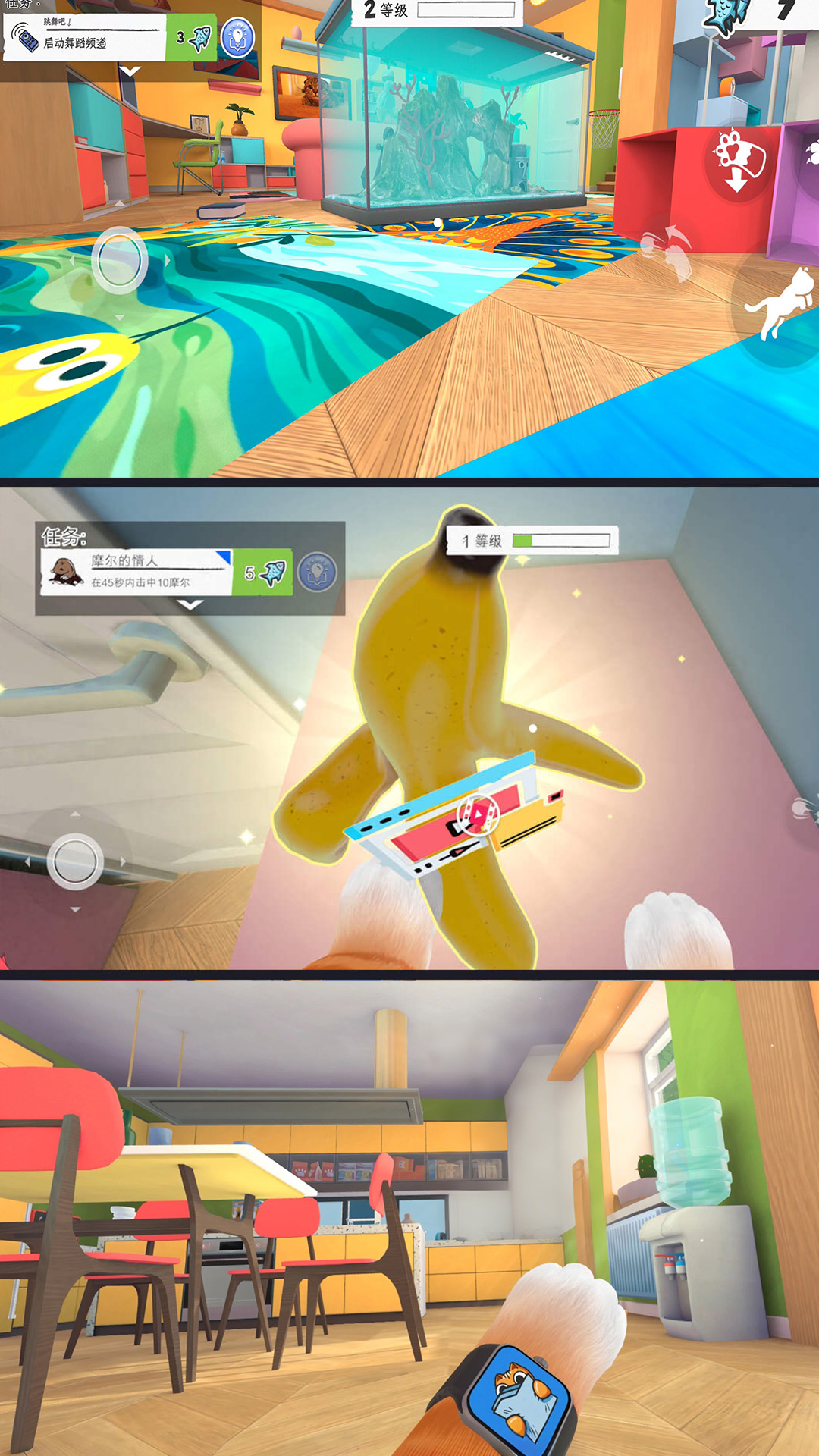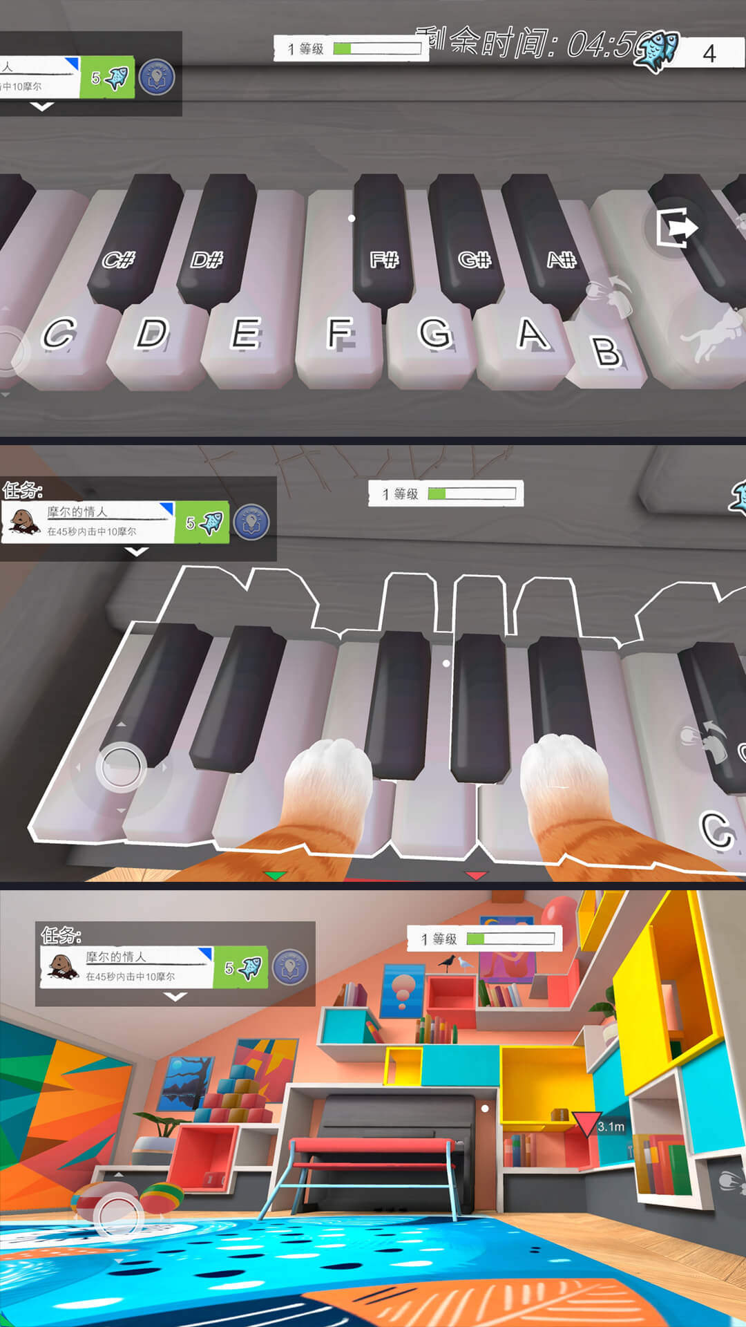 游戏精心设计了一个丰富多彩的开放世界,从温馨的室内空间到广阔的户外场景,处处都暗藏着惊喜。你可以跳上高高的书架俯瞰整个房间,也可以钻进狭小的纸箱里躲猫猫。每个区域都设置了独特的互动元素,比如可以推倒的摆设、会发出声响的玩具,甚至是其他小动物伙伴。随着探索的深入,你会发现更多隐藏的彩蛋和趣味玩法,让每次冒险都充满新鲜感。
