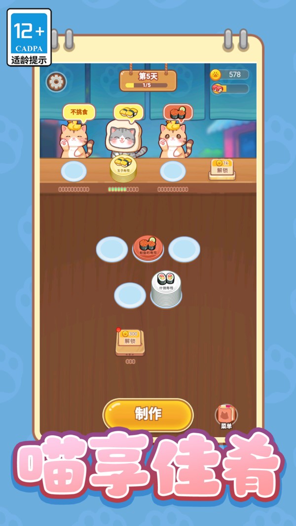 每天营业时间有限,你需要合理安排座位和制作顺序,确保每位猫咪顾客都能及时享用到新鲜出炉的寿司。随着店铺升级,可以扩大营业面积,增加更多特色座位区。