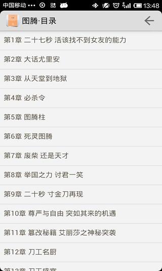 图腾app是一款专注于提供《图腾》小说阅读的移动应用,与其他小说软件不同,它仅收录这一本作品,旨在为读者打造纯粹的阅读体验。该软件界面简洁,操作便捷,让用户能够随时随地沉浸在这部奇幻小说的世界中。无论是通勤途中还是休闲时刻,图腾app都能成为你探索这个独特图腾世界的最佳伴侣。