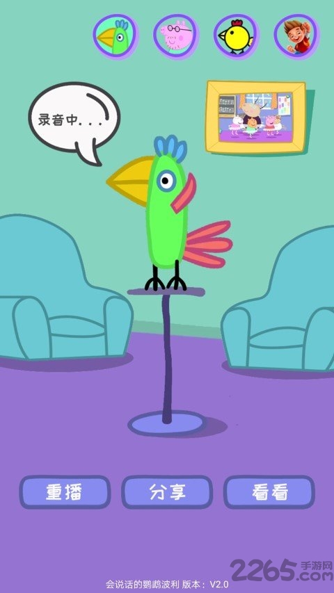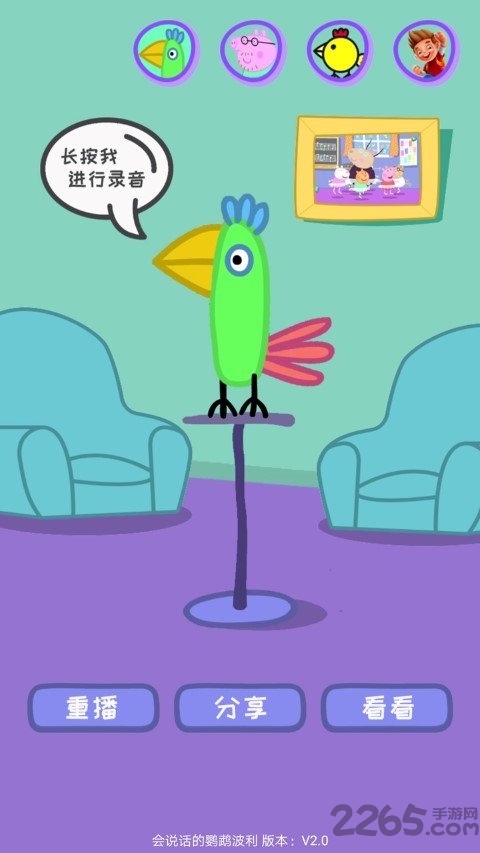 这款软件完美还原了动画中鹦鹉波利的经典形象和互动方式。当猪爸爸一家拜访时,聪明的波利总能带来欢乐的对话体验。软件特别设计了拟真互动机制:长按鹦鹉2秒以上录制语音,波利就会用独特的嗓音复述你的话。顶部音效切换按钮提供多达8种不同角色的声音选择,包括小猪佩奇、乔治等热门角色。录制完成的语音可以保存为趣味视频,通过社交平台一键分享。新增的AR功能让波利可以出现在现实场景中与你互动,拍照留念功能则能捕捉最搞笑的瞬间。每周更新的主题语音包,确保你永远都有新鲜玩法。