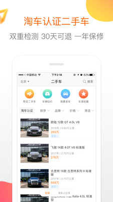 淘车app提供全方位的汽车交易服务,让您足不出户就能完成买卖车辆。您可以随时发布车辆出售信息,轻松实现车辆变现;平台精选全国优质二手车源,每辆车都经过专业检测,确保质量可靠;完善的售后服务体系,包括免费检测和30天包退政策,让您购车无后顾之忧;多种分期购车方案,满足不同用户的资金需求;智能筛选功能,帮助您快速找到心仪的车型。淘车,为您打造一站式汽车交易体验!