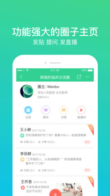3、零距离专家圈子:加入名医的圈子,可近距离与专家互动,拓展人脉,进行临床病例、医疗科普等精准学术交流圈、医患圈、科普圈。