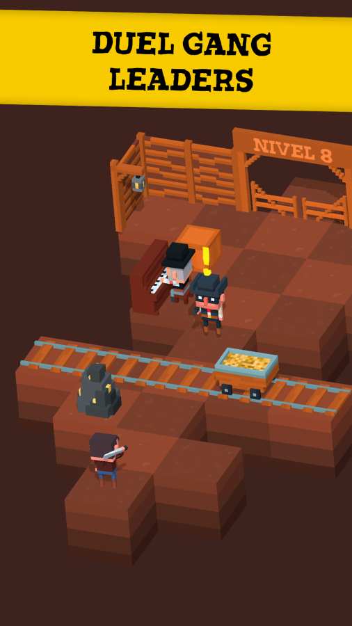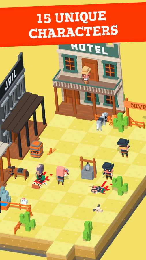 游戏采用精美的卡通渲染风格,色彩鲜明且富有西部特色,为玩家带来舒适的视觉体验。玩家将扮演一位身手敏捷的西部牛仔,通过简单的滑动和点击操作,就能完成移动和射击等动作。游戏采用独特的方格移动机制,每滑动一次屏幕角色就会移动一个方格,点击屏幕即可进行精准射击。玩家需要消灭场景中的所有强盗才能开启通往下一关卡的大门。随着通缉星级的累积,游戏难度会逐渐提升,还会触发特殊的警察关卡。此外,玩家还要时刻注意地图中随机出现的危险生物,比如会主动攻击的毒蛇和野马,这些元素都大大增加了游戏的挑战性和趣味性。