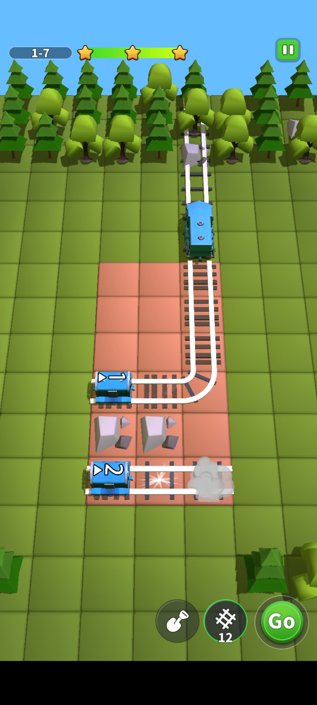 4、在游戏过程中,玩家需要仔细规划轨道拼接方案,避免被看似复杂的场景迷惑,找到最优解决方案。