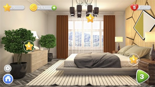 核心玩法分为自由装修和消除闯关两大模式,前者让你无限制发挥创意,后者通过趣味消除获取装修资源。在装修模式中,可以调整墙体结构、更换地板材质,甚至改造户外花园景观。游戏内置的物理引擎能真实呈现家具摆放效果,旋转视角功能帮助检查每个装修细节。闯关模式包含经典三消、限时挑战等玩法,通关后能获得稀有壁纸和装饰画。定期更新的主题赛季带来全新家具系列,完成赛季任务可解锁整套风格统一的装饰物品。