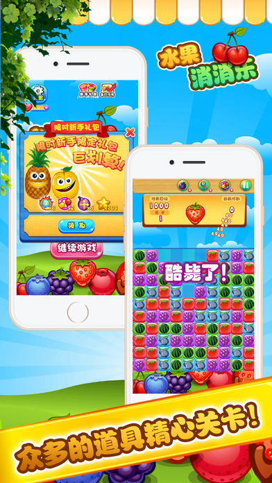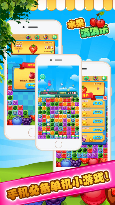 - 在限定步数内完成目标分数或收集指定数量水果即可通关,考验你的策略规划能力