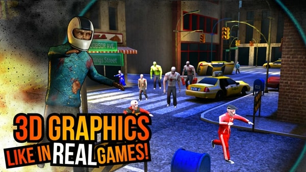 《亡灵狙击(The Deadshot)》的核心玩法是保护人类安全区不被僵尸入侵。玩家需要在每一关卡中尽可能多地消灭僵尸,阻止它们突破防线。随着游戏进程推进,玩家将遇到行动更迅速、攻击力更强的特殊僵尸类型,挑战性逐步提升。游戏采用直观的触控操作方式:通过点击屏幕瞄准目标,滑动调整射击角度,右下角的按钮控制射击时机。玩家可以随时切换不同武器来应对各种战斗场景。游戏还设有积分排行榜系统,鼓励玩家不断刷新自己的最高得分记录。多样化的任务目标和丰富的成就系统,让游戏过程充满乐趣和成就感。