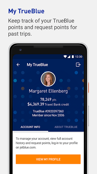 4、我的TrueBlue:注册或登录TrueBlue会员账户,实时跟踪积分余额,查看旅行银行状态,为过往行程补登积分,享受专属优惠和个性化服务,让每次飞行都更有价值。