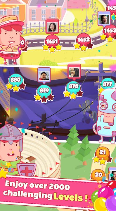 准备好开启一场梦幻般的泡泡冒险了吗?在《梦幻流行》中,你将进入一个充满奇思妙想的泡泡世界,这里的一切都源自你最疯狂的梦想。游戏邀请你加入这场梦幻之旅,运用精湛的泡泡射击技巧,成为泡泡大师。在冒险过程中,你需要解救被困的小鸟,与邪恶的吉米展开对决。超过2000个精心设计的关卡等待挑战,每月还会持续更新新内容。通过Facebook连接,你还能探索更多梦幻场景,包括云中城堡、马戏团、狂野西部等奇妙地点,确保你的冒险永不停歇。