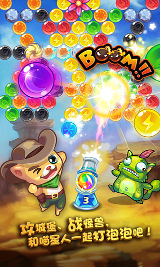 1.开心泡泡猫官方版是一款适合全年龄段玩家的休闲益智游戏,融合了消除玩法和收集要素,具有很高的可玩性。