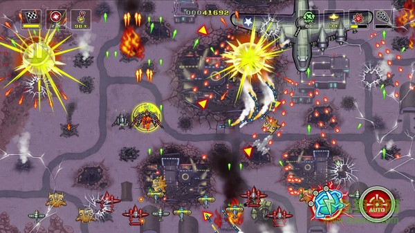 游戏设定在二战关键时期,当欧洲战局陷入胶着之际,德国空军王牌部队突然对美国发动突袭。玩家将扮演盟军飞行员,肩负起保卫家园的重任。游戏通过精彩的剧情叙述,带领玩家穿梭于美国各大城市和海岸线上空,展开一系列惊心动魄的空战。独特的僚机系统是本作的一大亮点,玩家可以指挥三架僚机协同作战,通过战术配合击败强大的敌军。游戏采用垂直卷轴射击模式,配合震撼的视觉效果和丰富的升级系统,让玩家在枪林弹雨中体验真实的空战氛围。特别值得一提的是,游戏支持最多4人本地合作,让玩家可以与好友一起组建飞行中队,共同完成这项艰巨的作战任务。