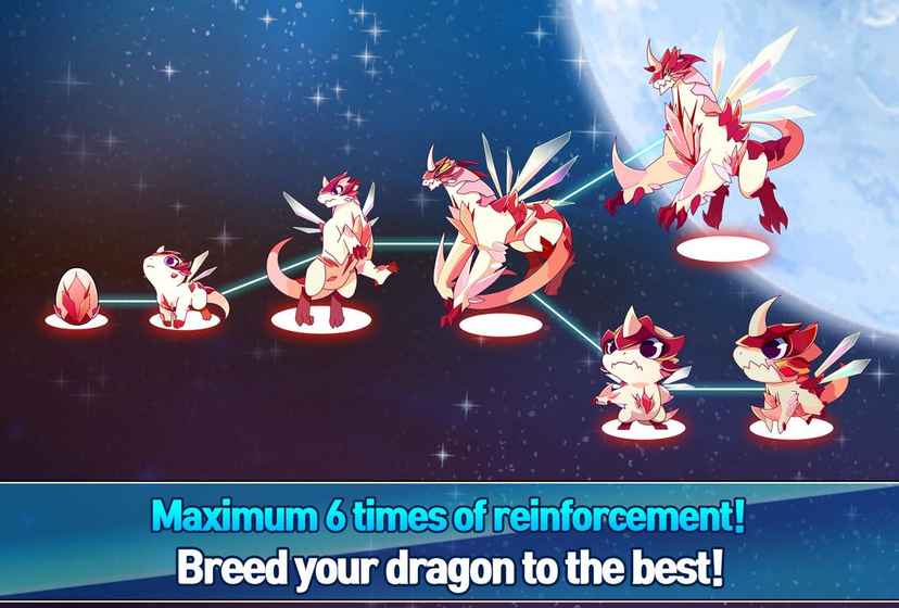 收集并孵化各种属性的龙蛋,每条龙都拥有独特的成长路线,分为3-5个进化阶段;